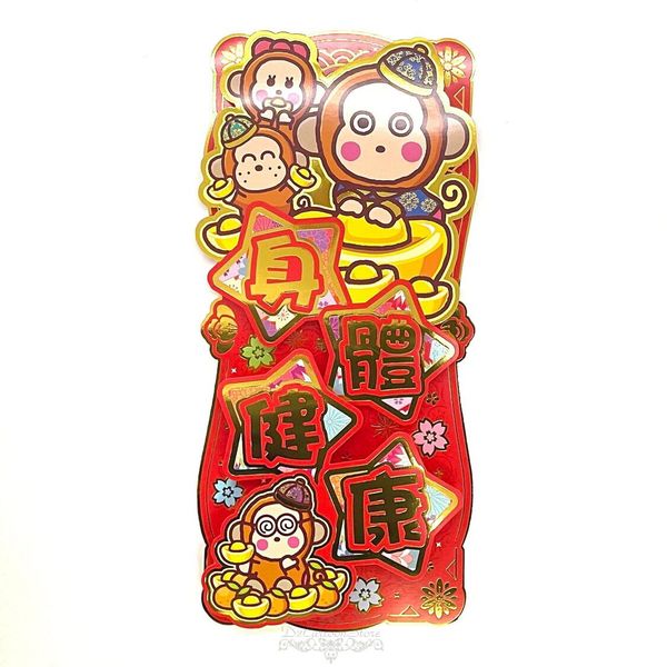 SANRIO-OSARU NO MONKICHI 港版 2025 蛇年 賀年 直款 紅色 立體 揮春 30.5X14CM 新年 裝飾 馬騮仔 淘氣猴 (身體健康)