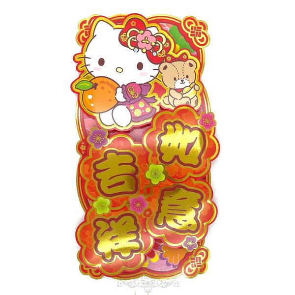 SANRIO-HELLO KITTY 港版 2025 蛇年 賀年 直款 紅色 立體 揮春 30.5X15.6CM 新年 裝飾 凱蒂貓 吉蒂貓 (如意吉祥)