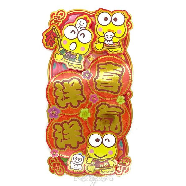 SANRIO-KEROKEROKEROPPI 青蛙 KEROPPI 港版 2025 蛇年 賀年 直款 紅色 立體 揮春 30.5X15.6CM 新年 裝飾 大眼蛙 可洛比 (喜氣洋洋)