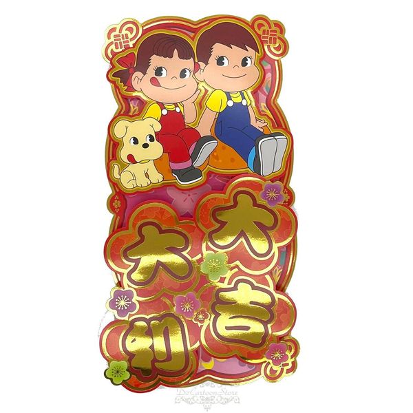 不二家- 牛奶妹 牛奶仔 港版 2025 蛇年 賀年 直款 紅色 立體 揮春 30.5X14CM 新年 裝飾 (大吉大利)