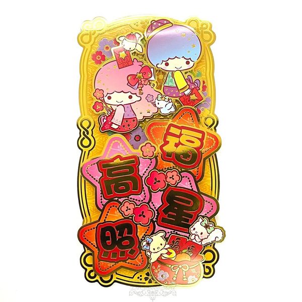 SANRIO-LITTLE TWIN STARS 港版 2025 蛇年 賀年 直款 金色 立體 揮春 30.5X15.6CM 新年 裝飾 雙子星 KIKI LALA 雙星仙子 (福星高照)