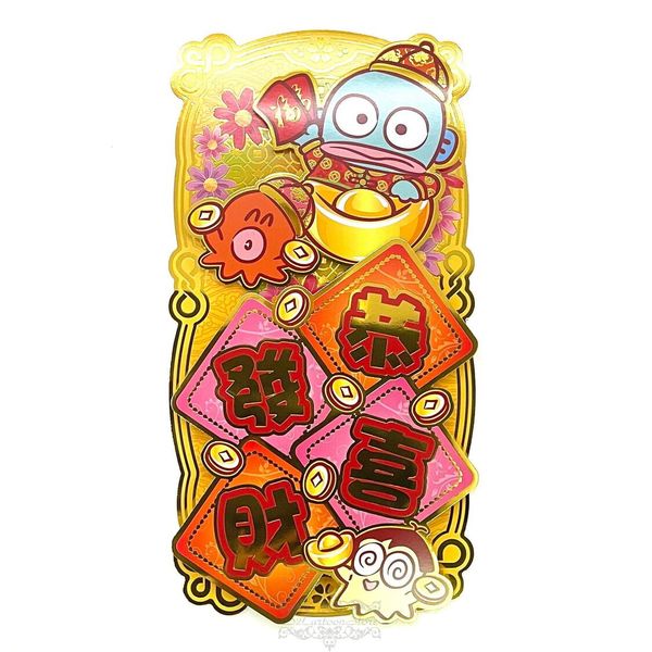 SANRIO-HANGYODON 水怪 港版 2025 蛇年 賀年 直款 金色 立體 揮春 30.5X15.6CM 新年 裝飾 海怪 人魚漢頓 (恭喜發財)