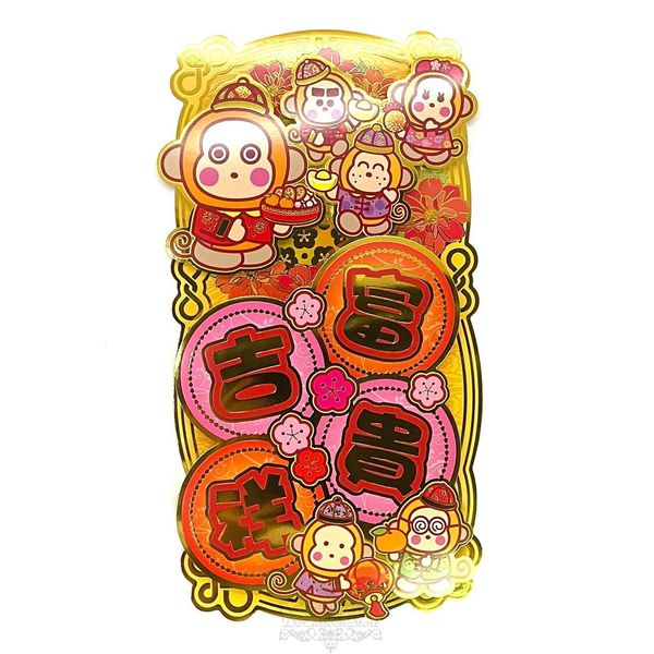 SANRIO-OSARU NO MONKICHI 港版 2025 蛇年 賀年 直款 金色 立體 揮春 30.5X15.6CM 新年 裝飾 馬騮仔 淘氣猴 (富貴古祥)