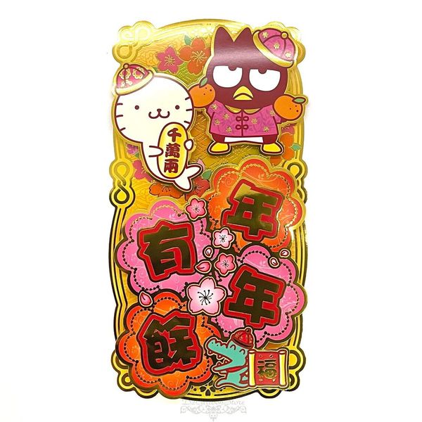 SANRIO-BAD BADTZ-MARU XO 港版 2025 蛇年 賀年 直款 金色 立體 揮春 30.5X15.6CM 新年 裝飾 酷企鵝 (年年有餘)