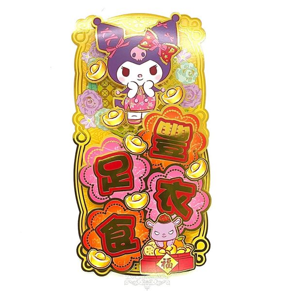 SANRIO-KUROMI 港版 2025 蛇年 賀年 直款 金色 立體 揮春 30.5X15.6CM 新年 裝飾 酷洛米 庫洛米 可羅米 (豐衣足食)