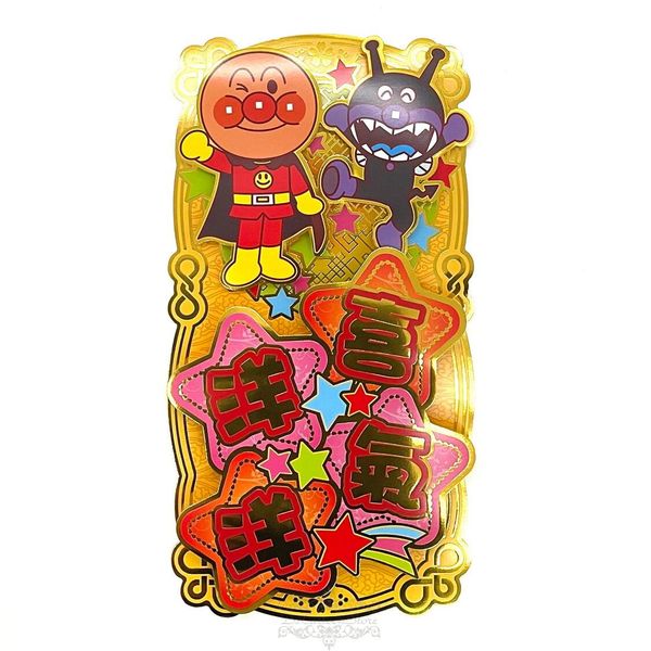 #N_A-ANPANMAN 麵包超人 港版 2025 蛇年 賀年 直款 金色 立體 揮春 30.5X15.6CM 新年 裝飾 (喜氣洋洋)