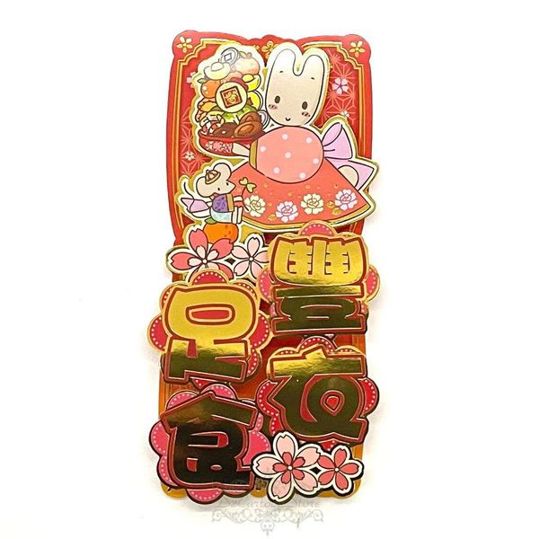 SANRIO-MARRON CREAM 茉莉兔 港版 2025 蛇年 賀年 直款 立體造型 迷你 特色 揮春 18.5X8CM 新年 裝飾 兔媽媽 (豐衣足食)