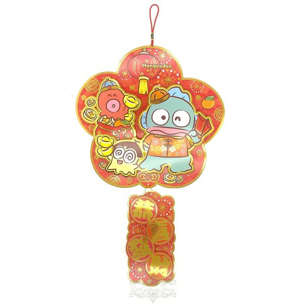 SANRIO-HANGYODON 水怪 港版 2025 蛇年 賀年 特色 紅色 直款 立體 揮春 吊飾 掛飾 掛件 33.8X32.5CM 新年 裝飾 海怪 人魚漢頓 (恭喜發財)