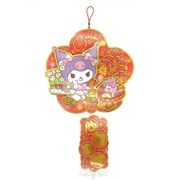 SANRIO-KUROMI 港版 2025 蛇年 賀年 特色 紅色 直款 立體 揮春 吊飾 掛飾 掛件 33.8X32.5CM 新年 裝飾 酷洛米 庫洛米 可羅米 (心想事成)
