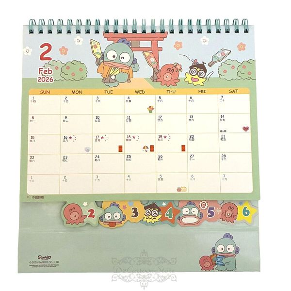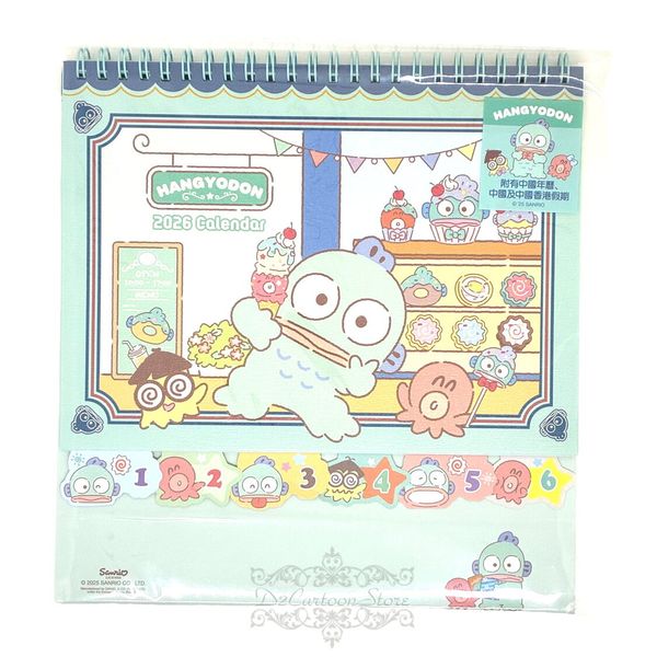 SANRIO-HANGYODON 水怪 港版 2026 桌上 線圈 座檯 年曆 月曆 日曆 香港假期 海怪 人魚漢頓 (313217)
