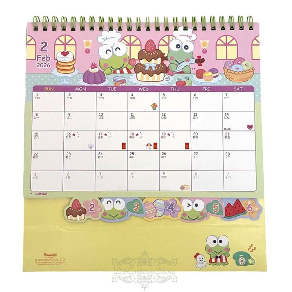 SANRIO-KEROKEROKEROPPI 青蛙 KEROPPI 港版 2026 桌上 線圈 座檯 年曆 月曆 日曆 香港假期 大眼蛙 可洛比 (313224)