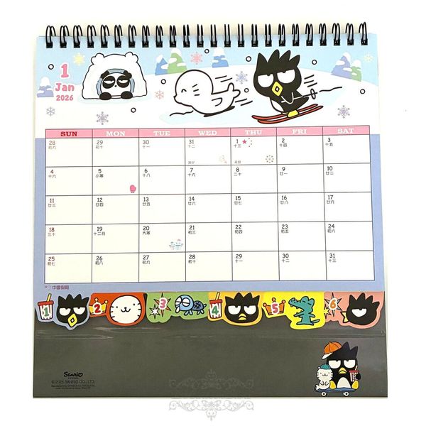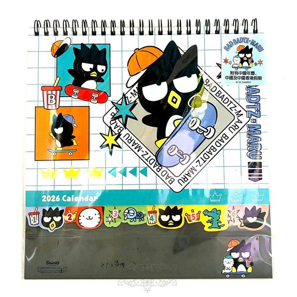 SANRIO-BAD BADTZ-MARU XO 港版 2026 桌上 線圈 座檯 年曆 月曆 日曆 香港假期 酷企鵝 (313255)