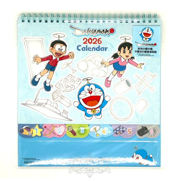 多啦A夢- FUJIKO-PRO DORAEMON 港版 2026 桌上 線圈 座檯 年曆 月曆 日曆 香港假期 機械貓 (313330)