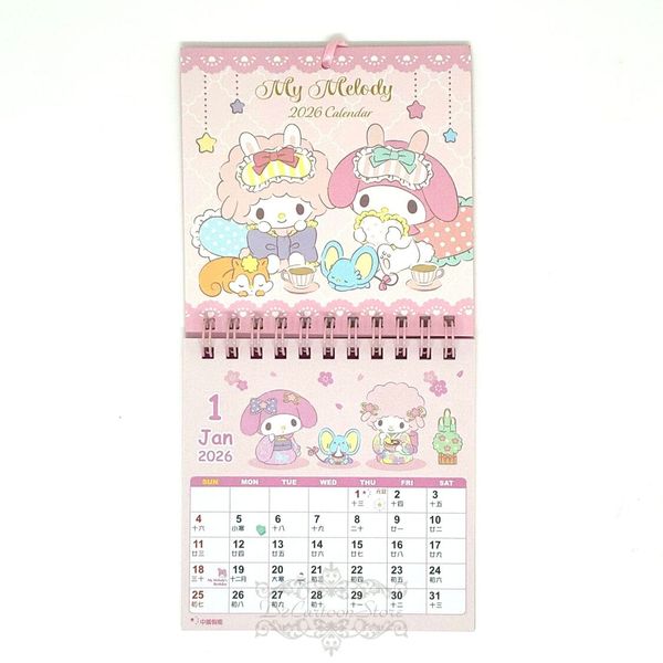 SANRIO-MY MELODY 港版 2026 迷你 掛牆 年曆 座檯 兩用 月曆 日曆 桌曆 香港假期 美樂蒂