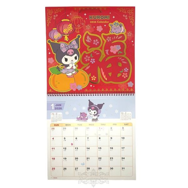 SANRIO-KUROMI 港版 2026 壁掛 年曆 通花 福字 掛曆 掛牆 月曆 日曆 香港假期 酷洛米 庫洛米 可羅米