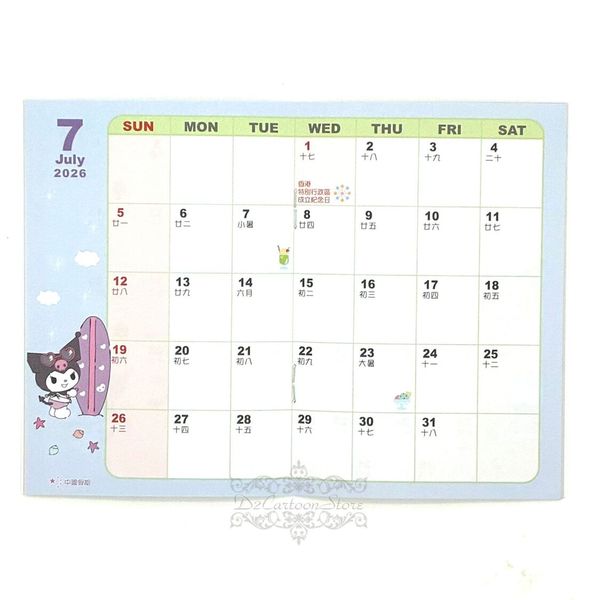 SANRIO-KUROMI 港版 2026 迷你 薄款 SCHEDULE BOOK 行事曆 記事簿 筆記本 香港假期 酷洛米 庫洛米 可羅米