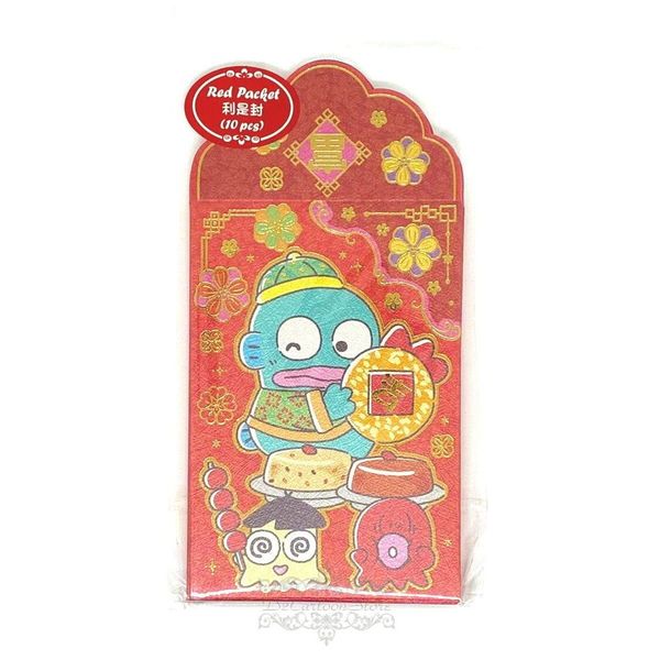 SANRIO-HANGYODON 水怪 港版 2026 馬年 賀年 長方形 紅色 利是封 10個裝 紅封包 紅包 壓歲錢 新年 8.2X12CM 海怪 人魚漢頓