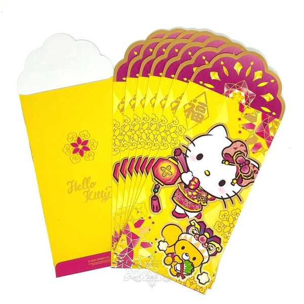SANRIO-HELLO KITTY 港版 2026 馬年 賀年 金色造型 利是封 8個裝 紅封包 紅包 壓歲錢 新年 8.7X16.5CM 凱蒂貓 吉蒂貓