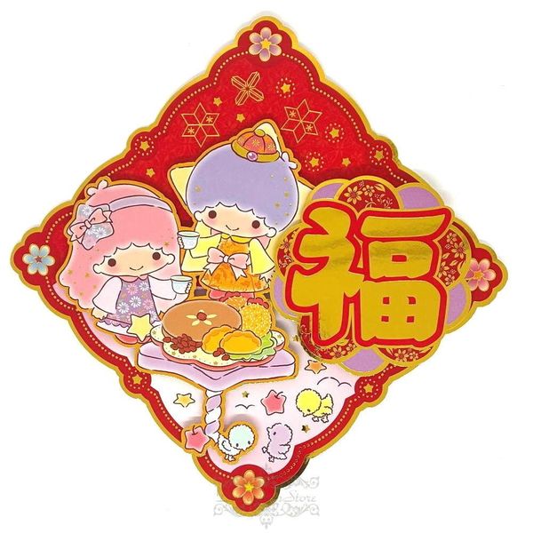 SANRIO-LITTLE TWIN STARS 港版 2026 馬年 賀年 花邊 菱形 福字 立體 揮春 30X30CM 新年 裝飾 雙子星 KIKI LALA 雙星仙子