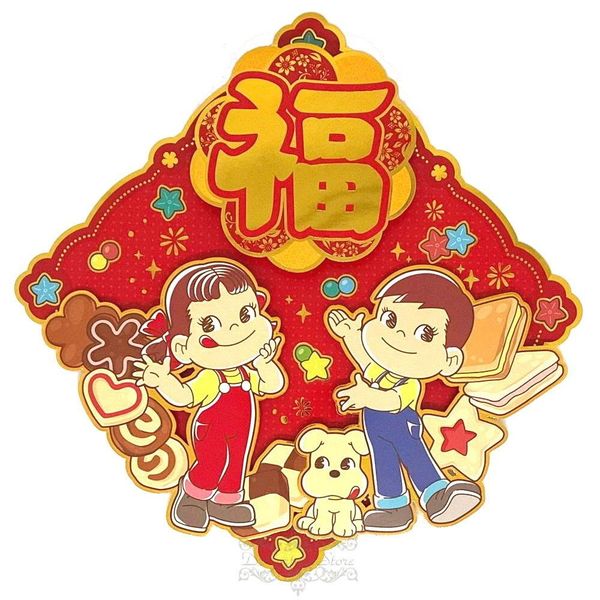fujiya-peko-不二家 港版 2026 馬年 賀年 花邊 菱形 福字 立體 揮春 牛奶妹 牛奶仔