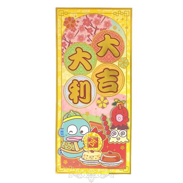 SANRIO-HANGYODON 水怪 港版 2026 馬年 賀年 直款 金色 揮春 14X30.5CM 新年 裝飾 海怪 人魚漢頓 (大吉大利)