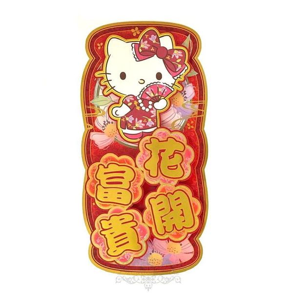 SANRIO-HELLO KITTY 港版 2026 馬年 賀年 直款 紅色 立體 揮春 30.5X15.5CM 新年 裝飾 凱蒂貓 吉蒂貓 (花開富貴)