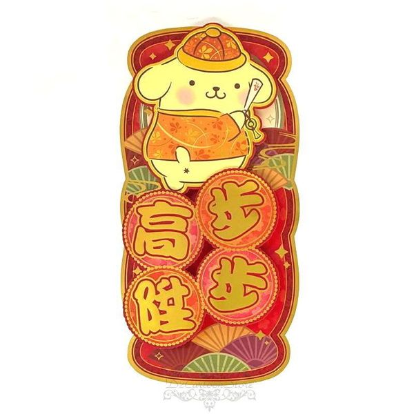 SANRIO-POMPOMPURIN 布甸狗 港版 2026 馬年 賀年 直款 紅色 立體 揮春 30.5X15.5CM 新年 裝飾 布丁狗 (步步高陞)