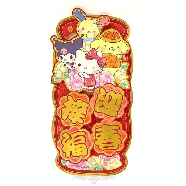 SANRIO-SANRIO CHARACTERS 港版 2026 馬年 賀年 直款 紅色 立體 揮春 30.5X15.5CM 新年 裝飾 (迎春接福)