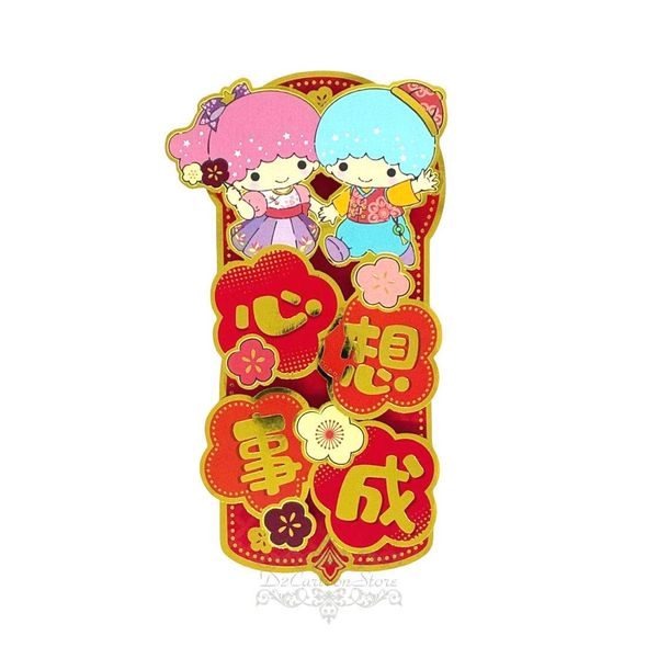 SANRIO-LITTLE TWIN STARS 港版 2026 馬年 賀年 直款 立體造型 迷你 特色 揮春 18.5X8CM 新年 裝飾 雙子星 KIKI LALA 雙星仙子 (心想事成)