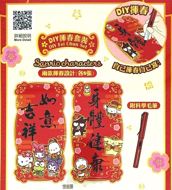 SANRIO-SANRIO CHARACTERS 港版 2026 馬年 賀年 直款 紅色 DIY 揮春 套裝 新年 裝飾