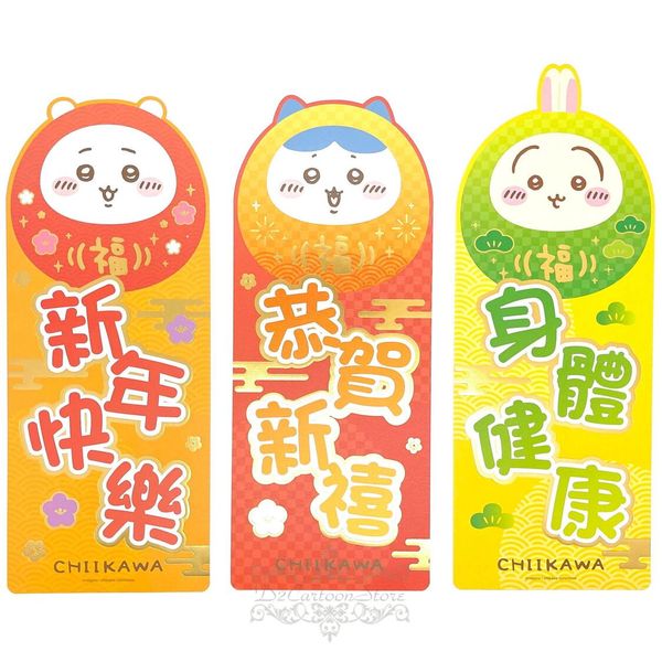 #N_A-CHIIKAWA NO MORI 港版 2025 蛇年 賀年 特色 達摩造型 直款 揮春 3件裝 37X14CM 新年 裝飾 小可愛 吉伊卡哇