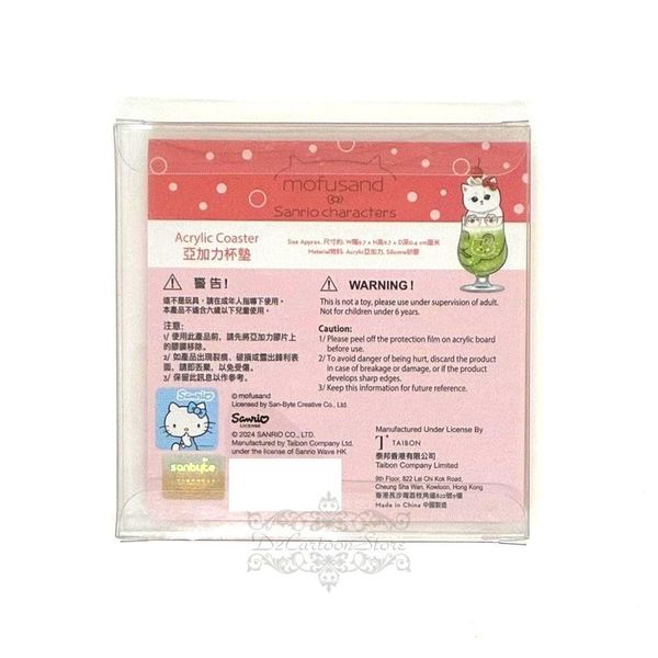 SANRIO-SANRIO X MOFUSAND HELLO KITTY 港版 桌上 亞克力 正方形 半透明 杯墊 餐具 2025年款 凱蒂貓 吉蒂貓