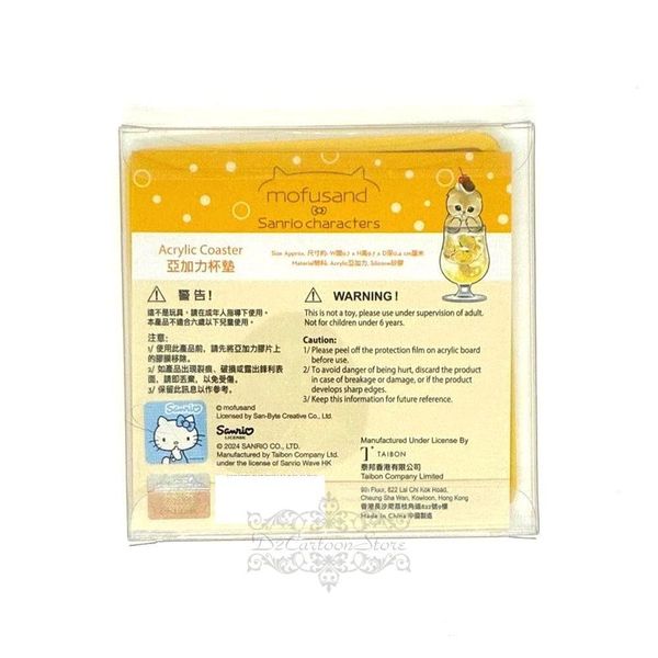 SANRIO-SANRIO X MOFUSAND POMPOMPURIN 布甸狗 港版 桌上 亞克力 正方形 半透明 杯墊 餐具 2025年款 布丁狗