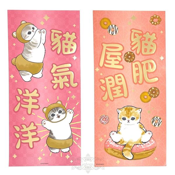 貓福珊迪-MOFUSAND 港版 2025 蛇年 賀年 特色 直款 揮春 2件裝 30.5X14CM 新年 裝飾 (貓氣洋洋+貓肥屋潤)