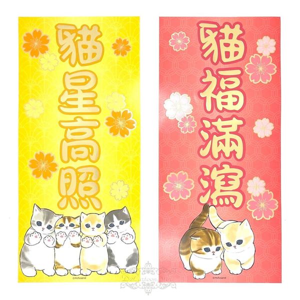貓福珊迪-MOFUSAND 港版 2025 蛇年 賀年 特色 直款 揮春 2件裝 30.5X14CM 新年 裝飾 (貓星高照+貓福滿瀉)