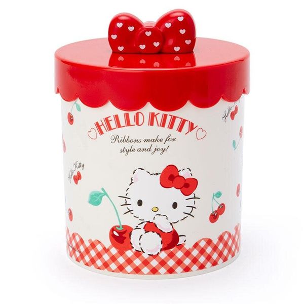 HELLO KITTY 日版 家居 桌上 圓桶形 揭蓋 收納罐 收納箱 收納筒 儲物箱 儲物桶 圓筒形 凱蒂貓 2019年款 【平行進口】