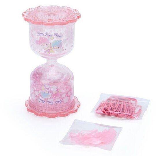 LITTLE TWIN STARS 日版 文具 萬字夾 橡皮筋 套裝 連 沙漏 造型 收納盒 迴紋針 漏斗 小物盒 橡筋 橡皮筋 套裝 橡根 雙子星 KIKI LALA 雙星仙子 2019年款平行進口