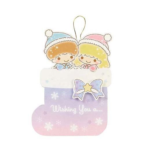 LITTLE TWIN STARS 日版 聖誕襪 造型 懸掛式 聖誕卡 可摺疊 可延伸 兩用 裝飾 聖誕咭 雙子星 雙星仙子 (2019聖誕系列) 【平行進口】