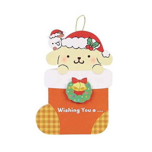 POMPOMPURIN 布甸狗 日版 聖誕襪 造型 懸掛式 聖誕卡 可摺疊 可延伸 兩用 裝飾 聖誕咭 布丁狗 (2019聖誕系列) 【平行進口】