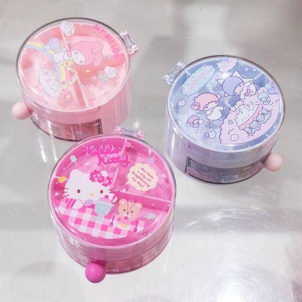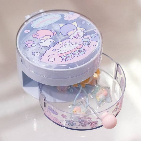 SANRIO-LITTLE TWIN STARS 日版 桌上 圓形 雙層 收納盒 小物盒 首飾盒 2018年款 雙子星 KIKI LALA 雙星仙子【平行進口】