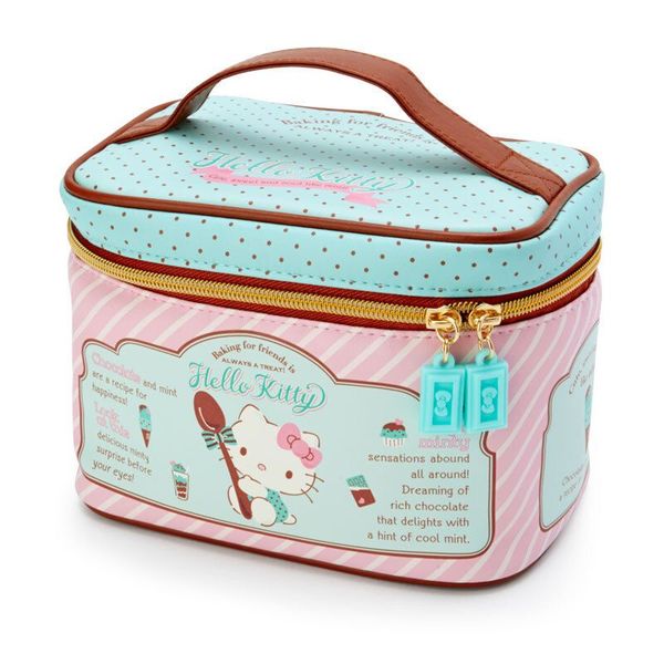 SANRIO-HELLO KITTY 日版 仿皮 手提 化妝袋 收納袋 儲物袋 2019年款 薄荷巧克力系列 凱蒂貓 吉蒂貓 【平行進口】