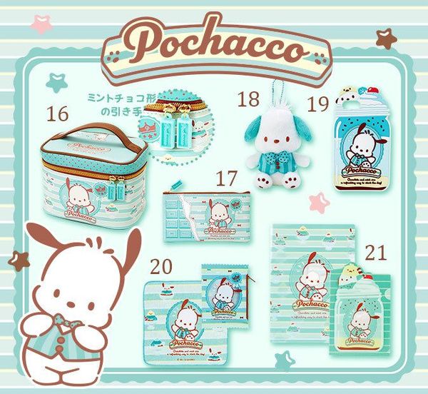 SANRIO-POCHACCO PC狗 日版 扁平 拉鍊 化妝袋 收納袋 扁身 小物袋 2019年款 薄荷巧克力系列 帕恰狗 【平行進口】