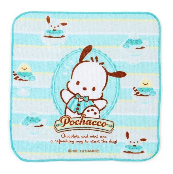 SANRIO-POCHACCO PC狗 日版 純棉 手帕 毛巾 手巾 汗巾 手巾仔 連 收納袋 2019年款 薄荷巧克力系列 帕恰狗 【平行進口】