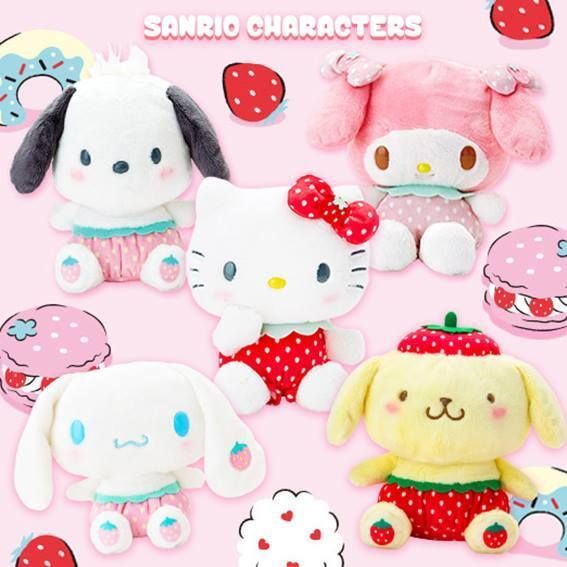 SANRIO-HELLO KITTY 日版 士多啤梨 造型 毛絨 公仔 毛公仔 布偶 玩偶 娃娃 2019 草莓系列 凱蒂貓 吉蒂貓 【平行進口】