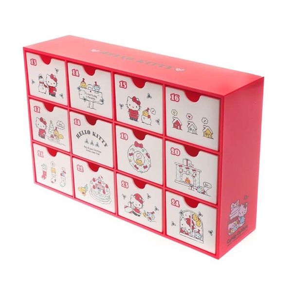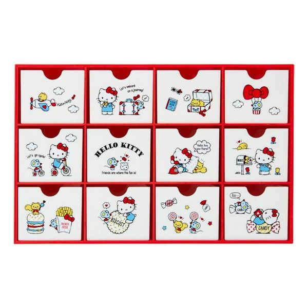 SANRIO-HELLO KITTY 正版 桌上 塑膠 收納盒 抽屜 小櫃桶 (十二格櫃) 2018年款 凱蒂貓 吉蒂貓 【平行進口】