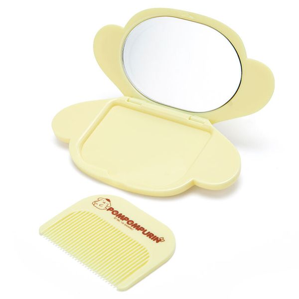 POMPOMPURIN 布甸狗 日版 面部 造型 梳連鏡套裝 梳 鏡 摺疊鏡 化妝鏡 便携 戶外 布丁狗 【平行進口】