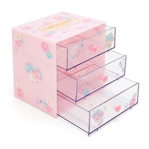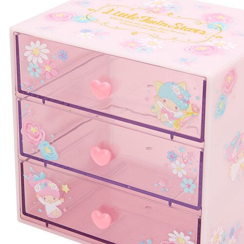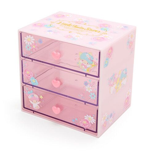 LITTLE TWIN STARS 日版 桌上 三層 收納盒 抽屜 儲物 小櫃桶 雙子星 KIKI LALA 雙星仙子 (幸福系列) 【平行進口】