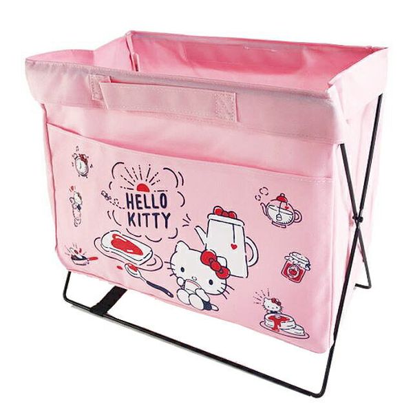 HELLO KITTY 正版 家居 儲物籃 連座架 摺疊 收納籃 零食籃 凱蒂貓 KT 吉蒂貓 【平行進口】