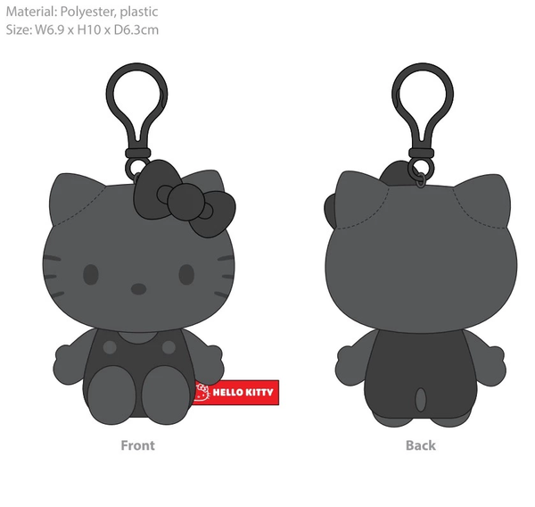 SANRIO HELLO KITTY GLOBAL 國際版 炭灰色造型 毛公仔 毛絨 娃娃 鎖匙扣 鑰匙扣 掛件 吊飾 2025年款 凱蒂貓 吉蒂貓【平行進口】
