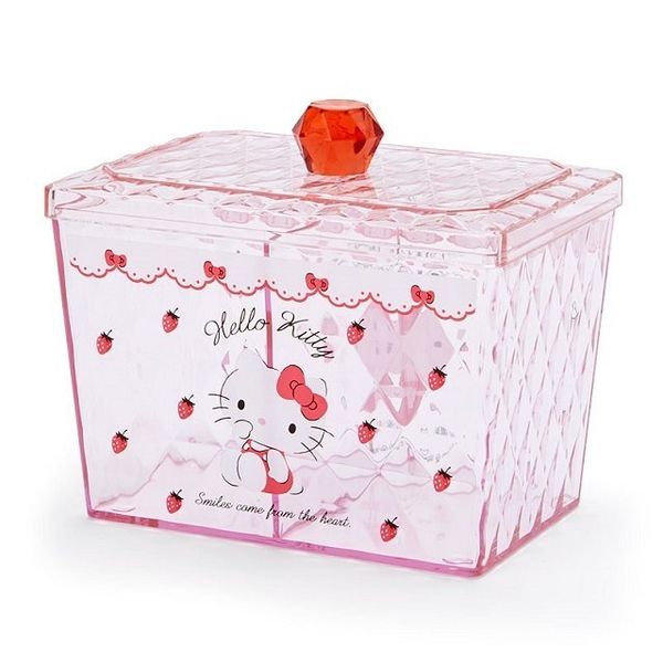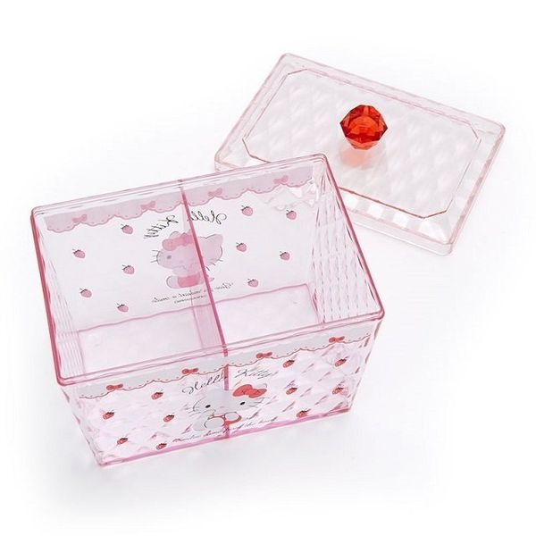 HELLO KITTY 日版 桌上 鑽石感 方形 揭蓋 兩格 分隔 收納盒 儲物盒 飾物盒 小物盒 化妝棉 收納罐 凱蒂貓 2019年款 【平行進口】